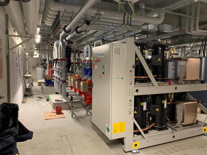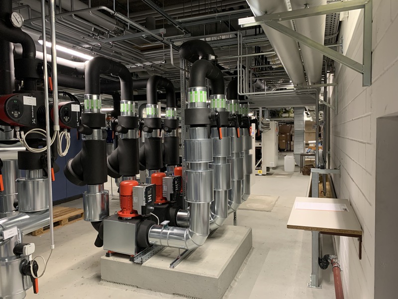 Die Kälte-, Steuer- und Zuleitungen wurden komplett im Erdreich bis zu den Wärmetauschern in der Technikzentrale verlegt.